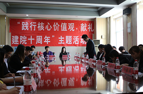 为使广大师生进一步领会社会主义核心价值观的重要意义,记录天院十年来的成长足迹,发挥天院人奋发进取,不断前进的精神。由院团委主办,求是学会承办的“践行核心价值观、献礼建院十周年”主题活动于5月14下午3点30,在行政楼会议室隆重举行。团委副书记潘柏夷、殷实,团委组织部、实践部部长任兆欢及学院各系分团委及各团学组织代表出席本次活动。