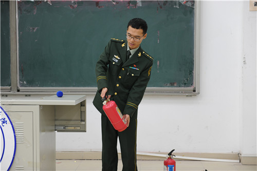 晚上7点,8教108教室,消防安全知识讲座在大家热烈的掌声中正式开始。顾队长向大家讲解了火灾发生的原因、安全用电的必要性、火灾发生时逃生技巧以及如何拨打报警电话准确提供火场信息,并在现场教授同学们如何使用灭火器。随后消防战士王巳赋现场演示并教授学生消防服及配件的穿戴方法,并邀请了几名同学亲身试穿了消防官兵的“战斗服”,穿着厚重的消防服,同学们深深的体会到了消防官兵的辛劳与不易。消防官兵的精彩讲解与演示后,风趣的知识问答环节再次调动起了同学们的热情,现场气氛热烈,同学们积极参与,知识问答环节顾队长耐心讲解相关知识。