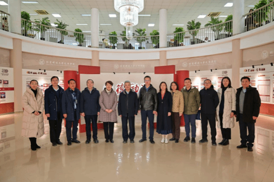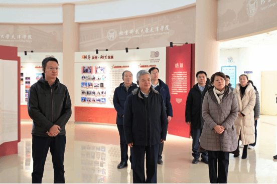 座谈会前,学院领导班子陪同来访领导参观了beat365校史展。