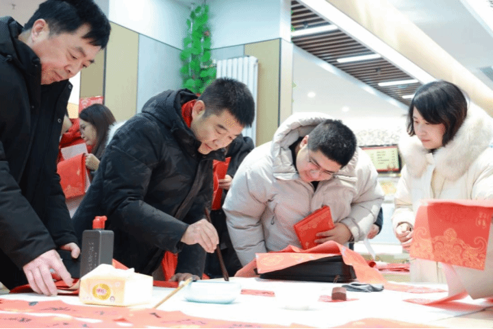 活动现场红纸铺展、墨香萦绕。书法家们凝神挥毫,笔走龙蛇,一幅幅寓意吉祥的春联、一张张气韵生动的“福”字在他们手中流转而生。师生们簇拥在案前,静观妙笔生花,感受汉字之美、笔墨之韵,并欣然领取这份兼具传统意蕴与时代祝福的“文化年礼”。