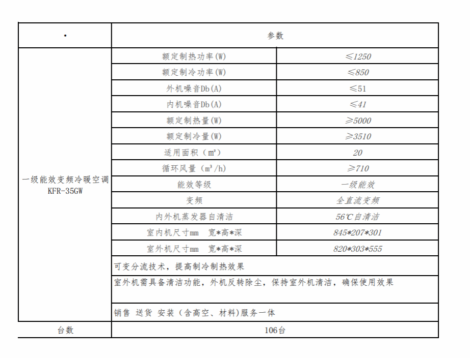 附件:“教师公寓空调采购”招标具体参数要求
