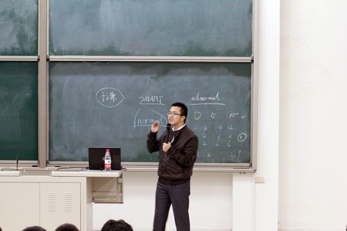 讲座中,彭老师就职业生涯规划理念进行了简单阐述,对大学生职业生涯规划进行了初步指导。期间他提出了三个关键词:目标、行动和责任。首先,彭老师用做游戏的方式跟大家互动,使在场同学明白了目标的重要性;其次,他教导大家,有了目标就要用实际行动去完成;最后,一段非诚勿扰的视频让在场同学明白了什么是人生的责任。人生职业规划不能只想到一己私利,每一个人都要为自己负责,更要为社会、为人类负责。