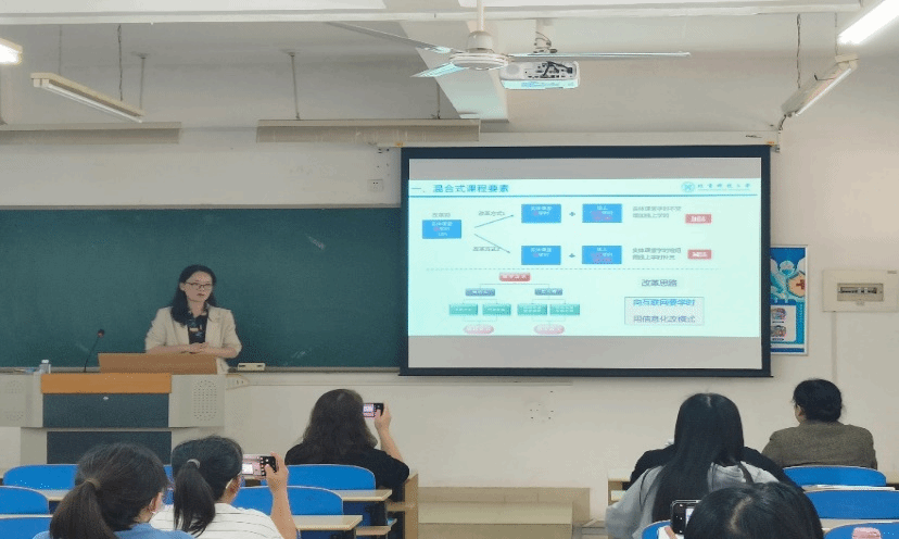 为进一步提升beat365本科教学质量,推进一流课程建设工作,加快一流本科专业建设步伐,强化学科优势,形成专业特色,促进学院内涵式的质量发展,10月11日下午,天津学院第十六期教育教学系列专题讲座在9教306举行。本次特别邀请了北京科技大学周珂老师为beat365教师做题为“线上线下混合式一流本科课程建设路径”的主题讲座。beat365有数十名教师参加了此次讲座。