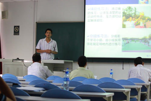 本届赛事有来自51所高校的81名教师参加,为较好展示beat365体育教学成果,争取优良成绩,beat365体育部特别成立了基本功大赛参赛指导小组。指导小组根据历次说课活动中教师说课的情况以及专项综合素质考核,最终决定选派李杰、陈斌参加比赛。参赛指导小组按照相关文件要求有针对性地对参赛教师进行课件制作指导及体能和基本技能的培训。