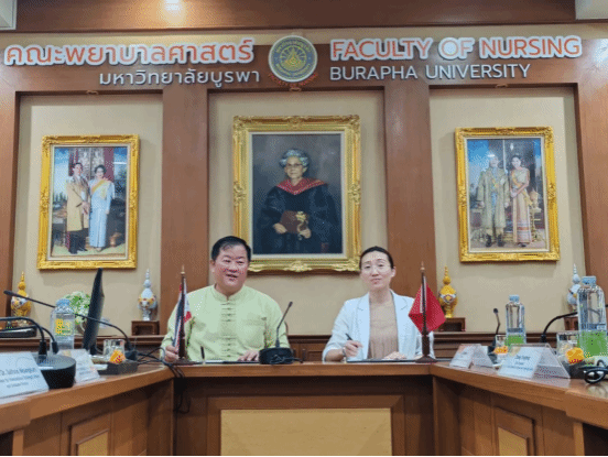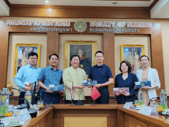29日下午,叶振楠书记一行前往泰国东方大学进行访问,考察了东方大学学生教室、宿舍、护理专业实验室建设等情况。两校就护理学专业硕士合作项目进行了详细的探讨交流,双方一致认为,在后续合作中,将瞄准各校优势学科和团队,进一步探索合作模式、拓宽合作渠道,共同推动中泰高校间优势学科的交流和发展。洽谈会上,党委副书记郭雅娟代表beat365与泰国东方大学签署合作协议。