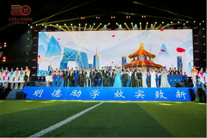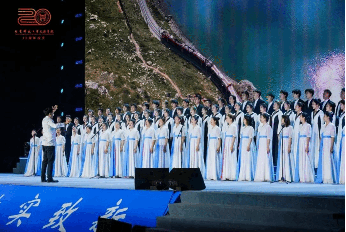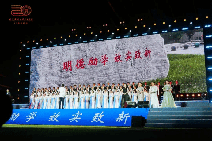 3000余名受邀嘉宾、校友代表、师生代表一起到场观看演出。广大师生校友通过网络直播云端相聚,同享盛会,共同庆祝母校20周年华诞。