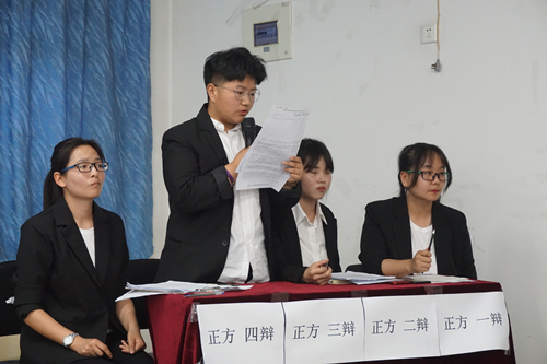此次决赛在金融1701班和国贸1703班两队之间展开。在双方简洁的自我介绍后,比赛正式开始。正方国贸1703班认为“经济发展与环境保护可以并行”而反方金融1701班则坚持“经济发展与环境保护不可并行”的观点。双方辩手在立论,攻辩,驳立论,自由辩论,总结陈词的环节中思路清晰,引经据典,字字珠玑,使现场气氛迅速升温,在自由辩论的环节中双方选手就辩题展开更深层次的辩论,个个妙语连珠,舌战莲花的辩论一次次将比赛推向高潮。最终2018年经济系辩论赛的冠军为金融工程1701班,亚军为国贸1703班,季军为国贸1701班。