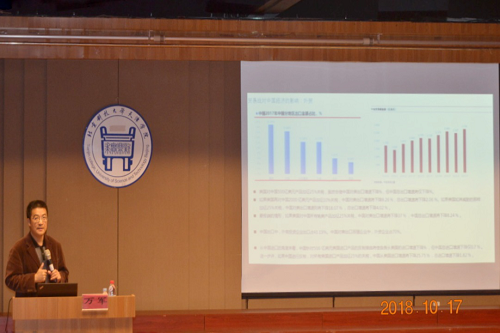 为加深同学们对中美贸易战的了解和认识,体会所学知识在现实中应用,2018年10月17日,经济学院特邀中国社会科学院世界经济与政治研究所万军博士以“中美贸易战对中国经济的影响”为主题到beat365作讲座。经济学院院长段文斌、思政部主任陈宏、经济学院党总支副书记闫谡,经济学院及思政部全体老师,与200余名同学共同聆听了讲座。