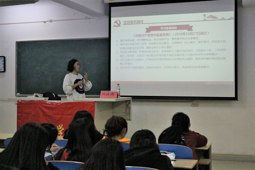 10月23日下午,第十四期学生业余党课初级培训第二讲在9教204举行。法律系党总支书记冯海燕老师为经济学院18级新生讲授党课。