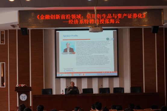 2016年5月9日下午13点,经济系特聘教授、对外经济贸易大学金融市场研究中心主任、金融学院教授张海云,在理工图书馆学术报告厅,开展了关于“金融创新前沿领域:信用衍生品与资产证券化”为主题的学术讲座。来自各系部的十余名教师和百余名学生参加了本次讲座。