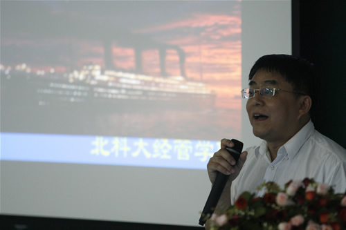 5月20日晚,经济系、管理系系列学术讲座——“经管大讲堂”正式启动,“经管大讲堂”第一期邀请北京科技大学经济与管理学院王立民教授在新图书馆210做讲座,主题为 “敢问路在何方——听王立民教授评说股市风云”。院长郭景文、学院办公室主任白亮、经济系、管理系主任王宾容、经济系党总支书记范丽丽、管理系党总支书记张恩惠出席了讲座,经济系、管理系教师、辅导员及三百余名学生听取了讲座。