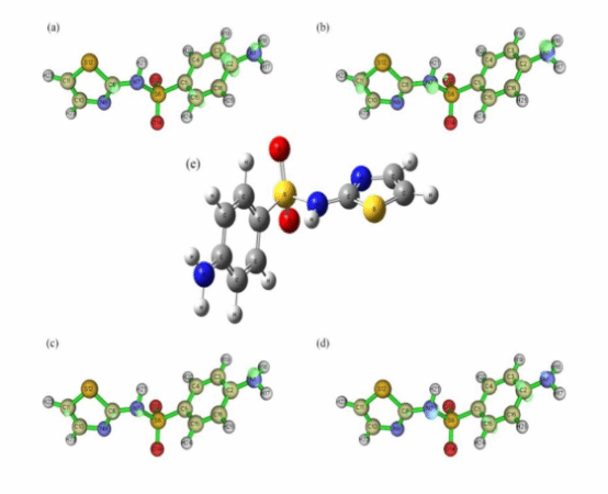 Figure 5 Fukui functions (a) , (b), (c) , (d) dual descriptor (DD),