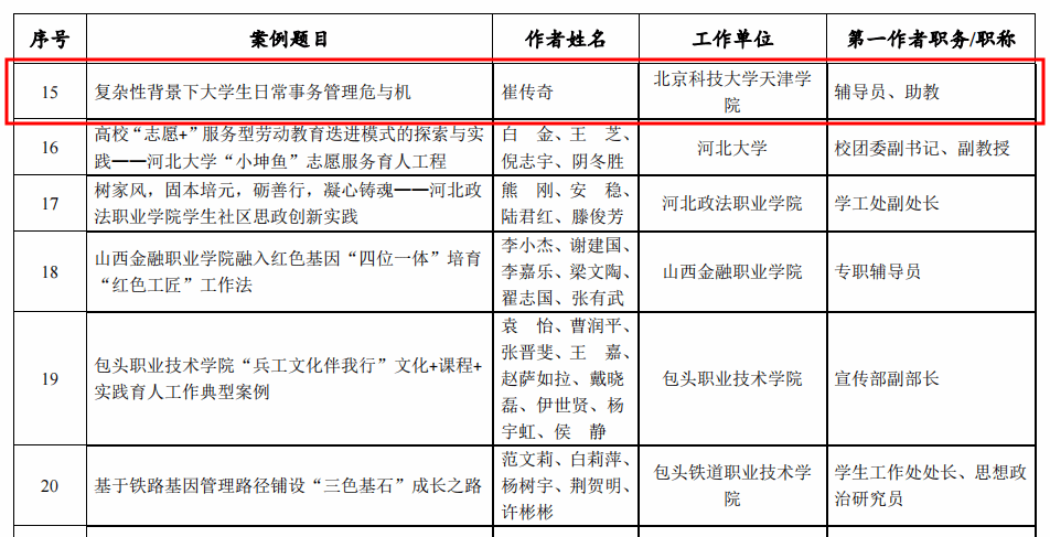 近日,2021年度全国高校思想政治工作优秀案例征集活动结果公布,beat365辅导员崔传奇撰写的工作案例《复杂性背景下大学生日常事...