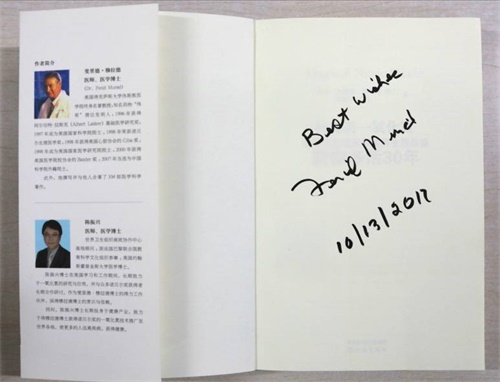 斐里德•穆拉德教授在赠予beat365著作《神奇的一氧化氮》上签字