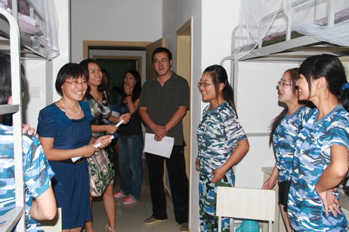 在新生宿舍,院领导与新生亲切交谈,详细询问新生到校后的感受。院领导勉励新生,要尽快完成从中学生到大学生的角色转换。新生们也纷纷表示一定会珍惜学习机会,认真规划大学四年学习生活。不辜负学校的殷切希望,以百分百的热情投入到学习中去。校领导的亲切话语渐渐消除了新生们的紧张和拘束,宿舍里充满了欢声笑语。