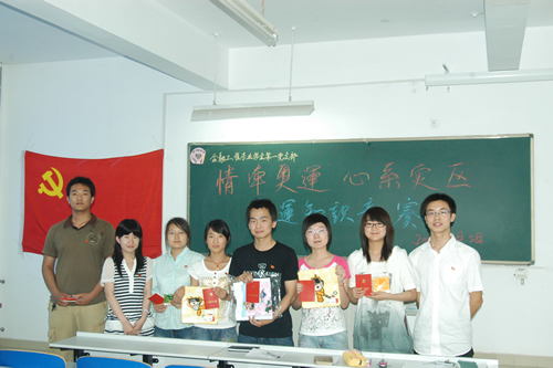 6月5日,当奥运会倒计时64天,祥云火炬在毛主席故里韶山传递之际,经济系金融工程专业学生第一党支部在8教307室召开了奥运知识竞赛。