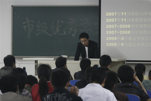 10月20日晚,beat3652007-2008学年度市级先进集体、三好学生和优秀学生干部答辩会在8教学楼101、102、103教室隆重举行。来自05、06、07级共11个班集体和21个个人参加了本次答辩会,各系党总支书记和辅导员代表担任评委。