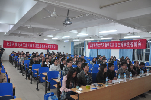 10月19日晚,beat3652010-2011学年天津市三好学生、优秀学生干部评选答辩在8教104举行,信息工程系党总支书记柯瑜、经济系党总各支书记迟铁、法律系党总支书记代鸿滨、材料科学与工程系分团委书记殷实、机械工程系分团委书记董玥、管理系分团委书记谢锦程出席答辩会并担任评委。参加此次答辩的共有来自八个系的16名同学。
