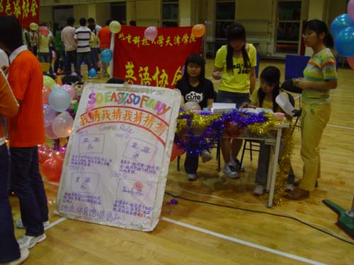趣味游园活动形式多样,不仅有个人游戏,还有团体小组游戏。其中,篮球协会的3对3趣味篮球比赛,是对抗性与趣味性的结合;科协的短信大赛,是熟练性与反应力的考验;棋社的五子棋擂主争霸赛,更是胆略与智慧的较量;还有乒乓球协会的乒乓球知识竞赛、电影协会的魔术表演、书法协会的趣味寻宝等活动,都吸引了众多同学积极参与。其间穿插的街舞、乐队及健美操表演,更为轻松的气氛添加了活力。