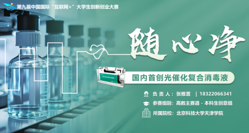 基于消毒液需求迅速增长以及对未来疫情的未知性。随心净团队针对传统消毒液存在的不足之处,由张雅萱、刘增本等6名学生所组成的团队,在王研和黄云汉老师的指导下充分发挥专业优势,运用新型材料技术,通过长期对比实验研发纳米氮掺杂二氧化钛材料。深入挖掘出升级后的纳米氮掺杂二氧化钛材料及其功能与过氧化氢结合,做到了快速杀菌,抗菌率高达99%,无刺激性气味,使用便捷,可充分减轻传统消毒剂对呼吸道带来的伤害。