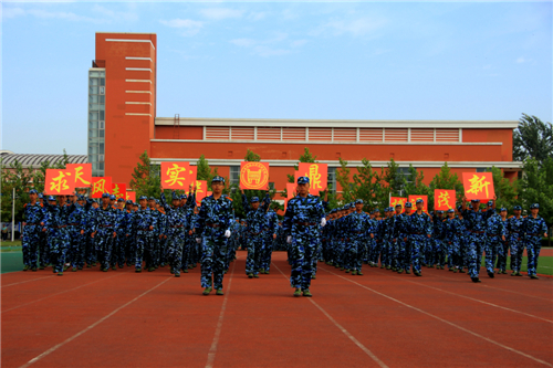 9月15日上午9时,学院迎来了2013级学生军训结业典礼。全院1700余名新生整齐列队,汇报两周来的军训成果。迎校旗,奏响激昂的解放军进行曲,六个分列式方队的队员迈着整齐的步伐,昂首挺胸,气势高昂地走过主席台,用嘹亮的口号向领导汇报两周的军训所得。随后进行的军训汇报科目表演将结业典礼推向了高潮。气势磅礴的擒敌拳方队,整齐划一的单个军人队列动作,气贯长虹的教官武术表演,娴熟规范的女生队列方队、“感恩”“责任”的拼图组字、威武有力的教官格斗动作,每一项表演都赢得全场热烈掌声和喝彩,同学们用精彩的表现展示了自己在军训中的锻炼成果。