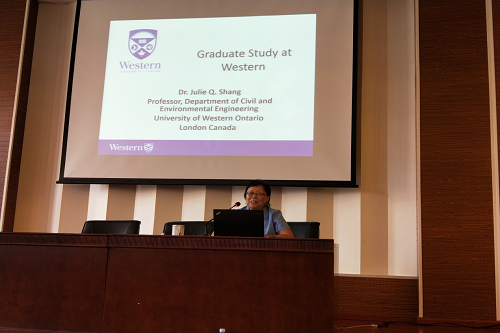 尚教授还以自己所在的单位加拿大西安大略大学为例,从如何申请、录取、课程安排、结课考试、生活等方面进行了深入的讲解,增加了beat365学生对出国留学的基本了解和兴趣,学生们积极提问,尚教授一一进行了解答。当问到她个人成长经历时,她认为每个人的成长轨迹不尽相同,最重要的是早早给自己设立一个目标,并坚持不懈地付出努力,“一分耕耘、一分收获”,“机会总是留给有准备的人”。