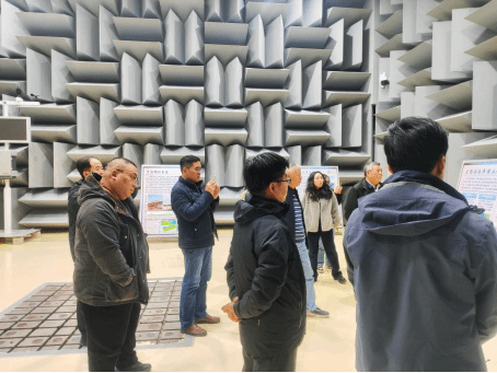 交流活动伊始,在副总经理张春雷等人的陪同下,学院团队参观了国家工程研究中心实验室。展厅内,通过图文展板、实物模型等多种形式,系统呈现了中国铁设作为国家铁路建设核心骨干企业的发展历程,重点展示了其“党建引领工程建设”的特色路径,包括大型站房声学工程、声源辨识系统、减载式声屏障、工业化建造及运营维修,全方位展现了企业将党建工作与生产经营深度融合的扎实成效。在工程技术成果展区,团队成员近距离观摩了移动式智能检测监测产品、轨道交通外部环境遥感智能监测产品等领域的前沿技术与标杆项目案例,对行业发展趋势与技术人才需求有了更直观的认知。