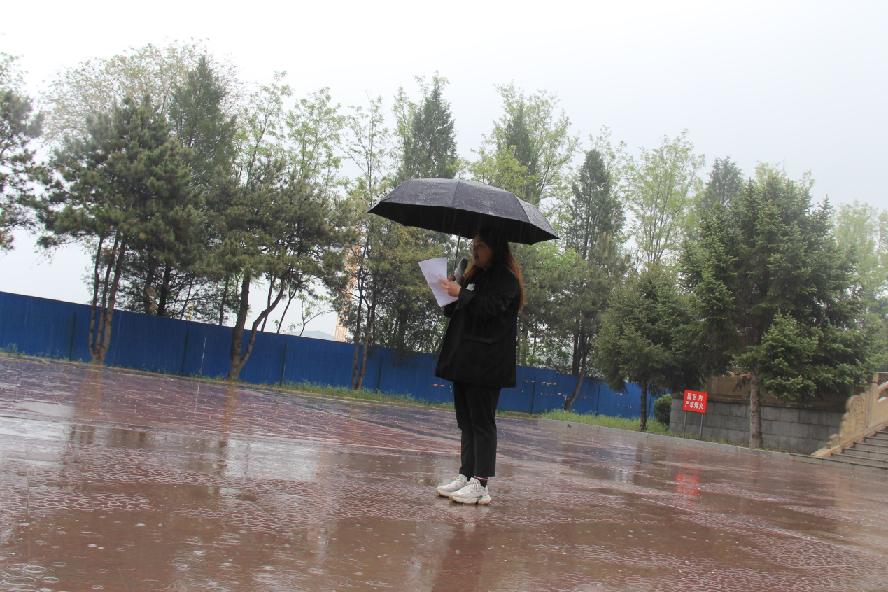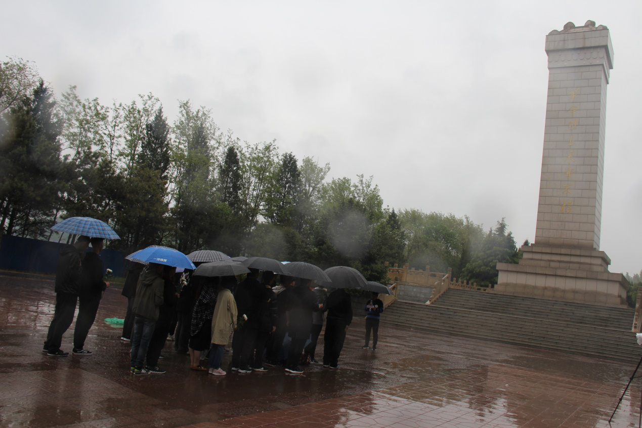 团支部成员抵达宝坻烈士陵园下车后,佩戴白纸花,集体进入陵园。团支书马茜主持了本次活动,首先由程哲峰同学介绍了天津市烈士陵园背景及其革命故事,齐唱国歌后,优秀团员代表佀泉董同学以“奋勇投身新时代,接力建功中国梦”为题目进行了演讲,表示新时代的青年应继承和弘扬五四精神、争做担当民族复兴大任的时代新人。随后,陈继亮同学带领团支部成员重温了入团誓词,辅导员张军老师向青年团员寄语,张老师希望大家能在紧张的学习之余,能够静下心来,审视自己的人生旅途,选择自己的信仰和志向。然后,团支部成员齐唱团歌,团员代表饶恒宇和陈俊龙同学敬献花篮,其余团员瞻仰革命英雄纪念碑并敬献鲜花;敬献毕,全体团员默哀致敬一分钟。最后,大家分组自由活动进行参观瞻仰,并且在互动展示中表达了自己对本次主题团日活动的感悟。