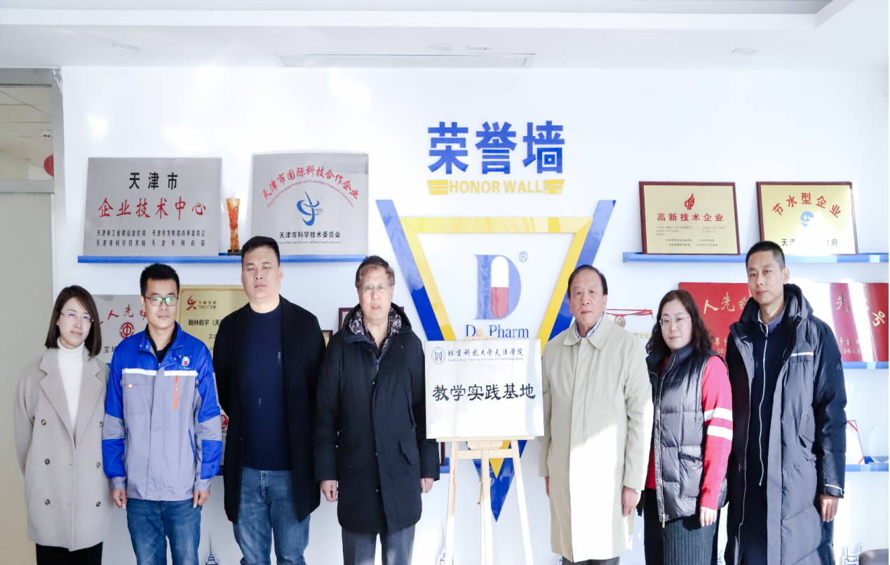 图1.朱超甫院长与鲁永胜董事长为实践教学基地挂牌(右三:朱超甫,左四:鲁永胜)