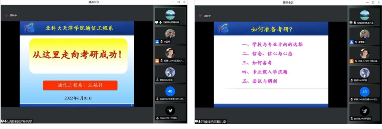 通信工程系主任汪毓铎教授作了以“从这里走向成功!”为题的专题宣讲,详细介绍了近年来全国考研形势、招生规模、国家政策、考研意义,从“学校与专业选择”、“信念、信心与心态”、“如何备考”、“专业课入学试题”、“面试与调剂”等多个方面为同学们做了规划。
