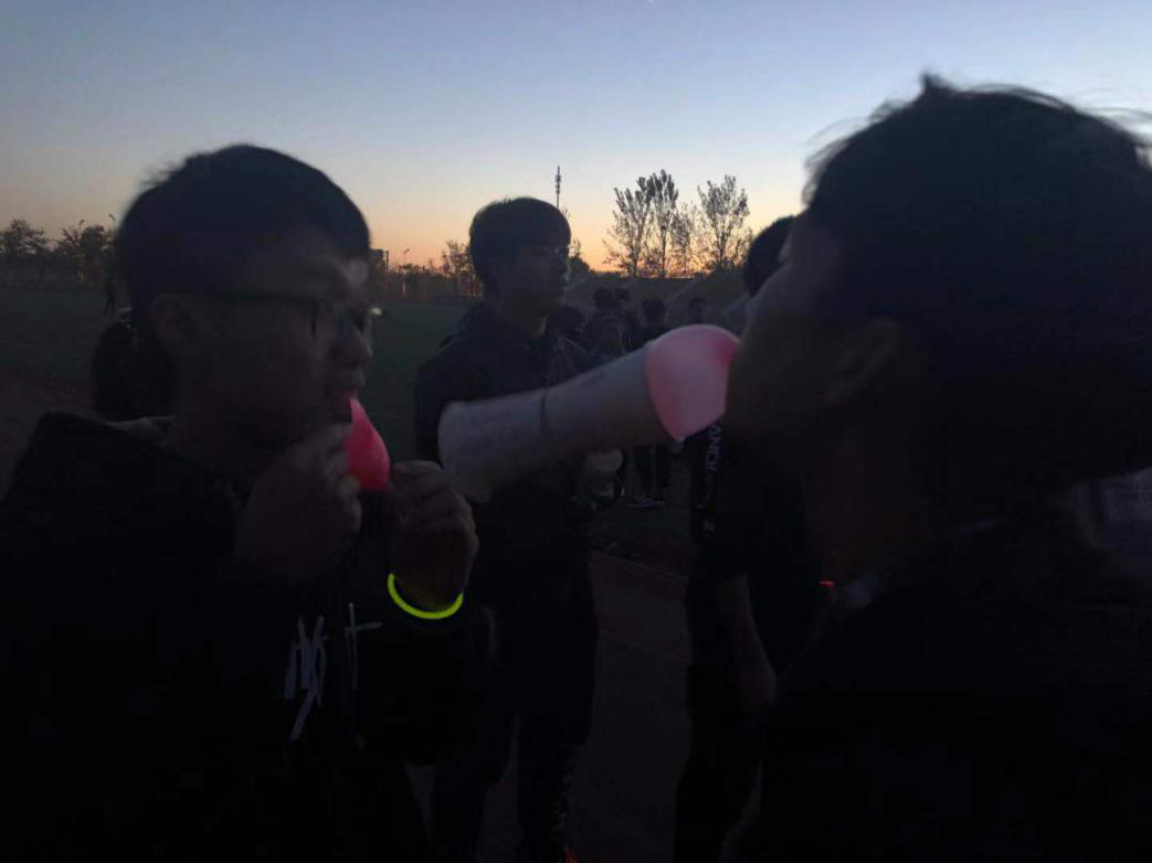 本次活动面向全系学生,共有十六个队伍报名参与。夜幕降临,所有人手上的荧光棒都变得更加显眼,远远看去就想操场上多了一条荧光的长带。随着一声响亮的“跑”,同学们便开始动了起来,“光带”也被越拉越长。热身运动后,同学们在不同圈次开展了不同的益智游戏,场面一度十分的活跃,笑声传遍了整个操场。随着第八圈的结束,活动进入了尾声,筋疲力尽的同学们围坐在操场上进行最后的合影留念。