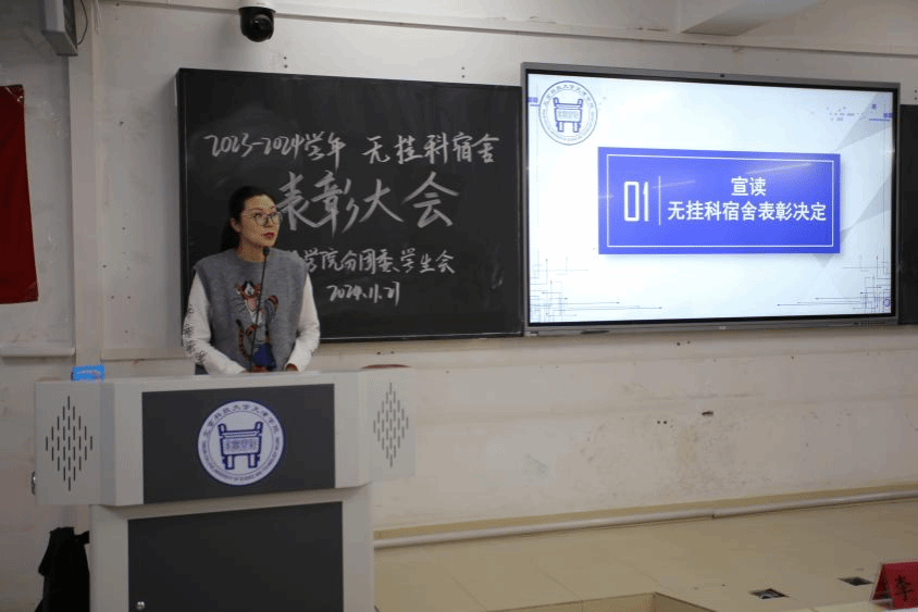 陈月老师宣读《智能制造学院关于表彰2023-2024学年无挂科宿舍的决定》,并对2024-2025学年“无挂科宿舍”和“无挂科个人”提出期望。