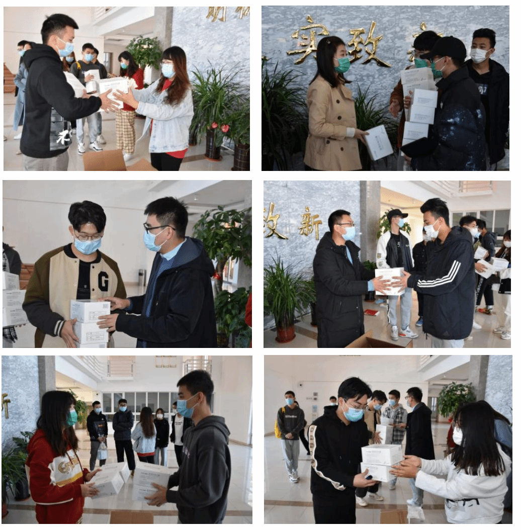 经济学院老师和辅导员为学生发放口罩