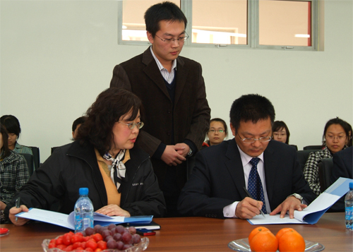 经济系主任王宾容与长江证券李红涛总经理在实习基地协议书上签字