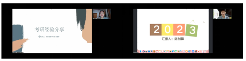 2019级徐鑫婷学姐和2018级陈剑锋学长结合自身的考研经历,先后围绕院校选择、考研流程、考研备考策略、名师及书目的选择、科目复习、调整自身学习状态、考研复试方面的心得感悟等方面向同学们做了详细的介绍,并就如何高效制定学习计划、如何提高有效的学习时间给出了各自的意见,为同学们提供了参考。