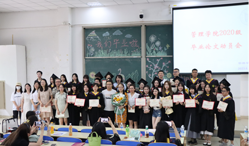 王宾容副院长在最后的总结中强调,同学们一定要坚守学术诚信,高质量地完成论文工作,为自己大学生涯划上圆满句号,为未来的职业生涯奠定坚实基础,希望明年此时有更多的同学能走上优秀毕业论文的领奖台。本次管理学院毕业论文动员大会对2200级同学起到了很好的动员作用,为接下来的2020级本科生毕业论文工作奠定了良好的基础。