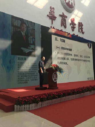 管理学院常务副院长王宾容老师、管理学院教师王晓欣参加了会议。东北财经大学刘永泽教授、中国人民大学王化成教授、清华大学于增彪教授、重庆理工大学程平教授等分别围绕会计教育改革、新时代会计人才培养、管理会计教育创新、“互联网+会计”教育等财会前沿问题做了精彩的报告;广东财经大学华商学院陈美华教授更是以“民办高校会计人才培养目标定位与特色培育”为主题,从民办高校特点、协同育人特色、国际化特色、“互联网+会计”特色等角度深入浅出的阐述了独立学院在财会人才培养上的优势及前景,为beat365起到了很好的借鉴作用。