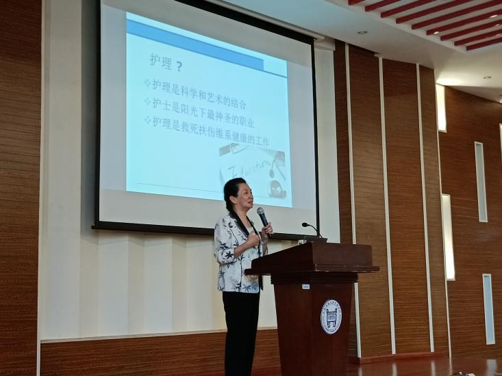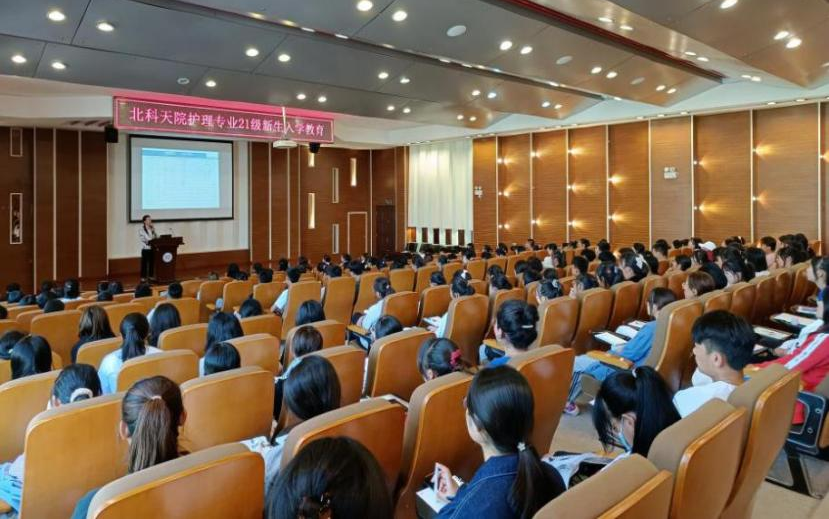 2021年9月22日15:00英国beat365官方网站大健康学院护理学专业2021级新生入学教育,在理工馆学术报告厅成功召开。护理系主任杨新月教授为学生做了一场振奋人心的“护士是阳光下最神圣的职业”专题讲座,学生们反响热烈、情绪高涨。大健康学院副院长王堃,副主任顾红霞、邢冬婕,辅导员付颖元及159名护理专业新生参加了本次活动。
