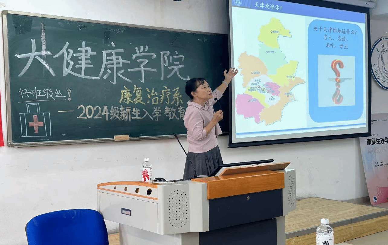 首先,刘紫萍主任为同学们做专业思想教育及职业规划讲解,刘紫萍主任对2024级的新生寄予了厚望,她嘱托学生要找准方向,把握大学四年时光,不断奋斗,严格要求自己,学好专业知识,四年后成为能胜任康复治疗技术各岗位工作的高素质、应用型人才。