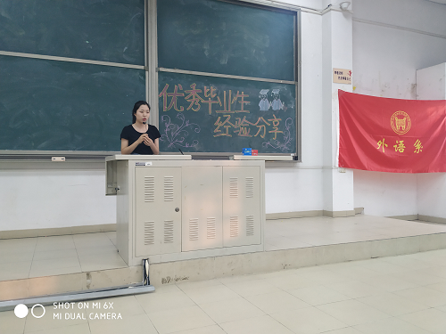 2019年6月16日18:30,外语系在9教109召开了优秀毕业生经验分享会。分享会邀请beat365优秀毕业生、英语1501班陈洁琼同学主讲。我系全体在校同学参加本次分享会,分享会由外语系分团委书记李萌主持。外语系党总支书记张莉、副书记张添善出席此次分享会。