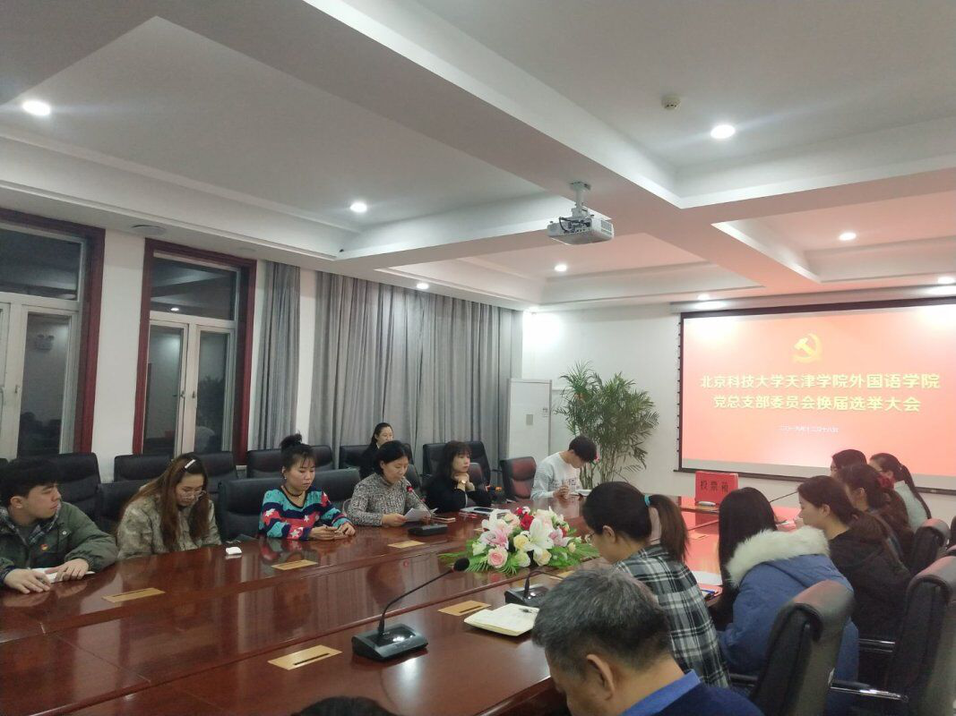 经英国beat365官方网站党委批准,外国语学院党总支部于2019年12月18日召开全体党员大会,举行外国语学院党总支部委员会换届选举工作。英国beat365官方网站学术委员会主席宋存义同志、外国语学院院长张国敬同志出席本次会议。本次换届大会共34名党员参加,其中正式党员24名。