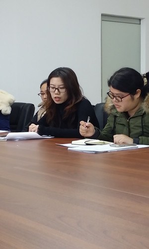 紧接着,外语系教师进行自由发言,首先张悦老师结合自己同声传译课程的教学经历,谈了对当今社会和平与发展主题的理解,在教学开创合作共赢的新局面,对学生一视同仁,对少数民族的学生,尽量避开敏感话题。黄文婧老师针对目前世界中存在的“中国威胁论”谈了自己的看法,中国虽然是一头狮子,但是是一头和善、文明的狮子,在教学中,她也这样教育学生,传递正能量。虞娜芳老师认为,不管是习近平总书记的重要讲话精神,还是教学过程,关键都在于意识的形成,意识决定行为,所以在课堂上,要培养学生爱国的意识,弘扬社会主旋律。另外,高子琳、翁志娟、李妍也分别就习近平总书记的重要讲话精神结合自身的工作经历,谈了一些看法。