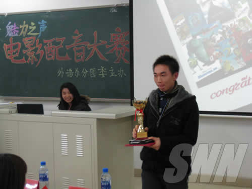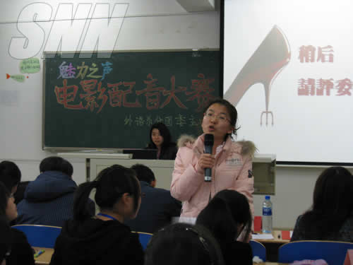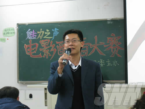 12月10日晚7:00,由外语系分团委主办的“魅力之声之英语电影配音大赛(决赛)”在八教104举行。外语系党总支书记岳强、院团委副书记迟铁、外语系教师贾林、张悦、李妍、刘红日等老师出席并担任了此次比赛的评委。
