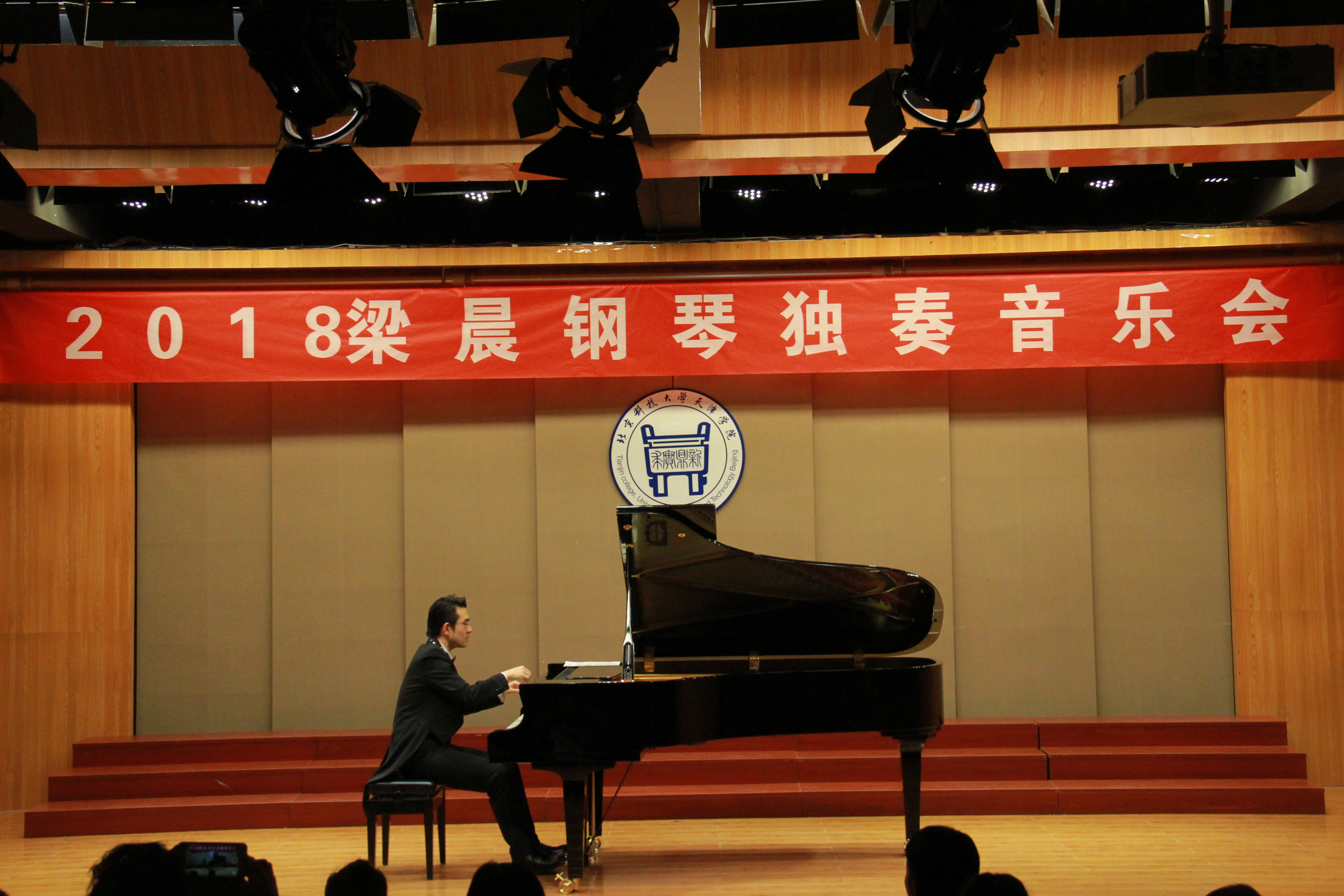 梁晨是艺术系钢琴教研室青年教师,毕业于法国圣太田国立音乐学院,先后师从于乌克兰国立音乐学院敖德萨冈扎洛夫教授,莫斯科音乐学院维多利亚教授,天津音乐学院沈乃凡教授,法国圣太田国立音乐学院钢琴家塞丽威教授,巴黎高等音乐师范学院(冼星海的母校)、欧洲著名钢琴家、教育家弗朗索瓦丝•蒂娜。本场音乐会为他的个人独奏音乐会。以浪漫主义钢琴作品为主,演奏了钢琴诗人 - 肖邦和浪漫主义钢琴之王 - 李斯特的作品,同时带来了热血沸腾的钢琴曲《黄河颂》,让观众欣赏到了古今中外的钢琴经典名作。同时,梁晨还特别邀请了他的父亲国家一级演员梁昌远先生同台献艺共同合作演奏了二胡曲《赛马》。梁晨的激情演绎将现场观众带入了不同时期的意境当中,得到了现场观众的热烈欢迎。