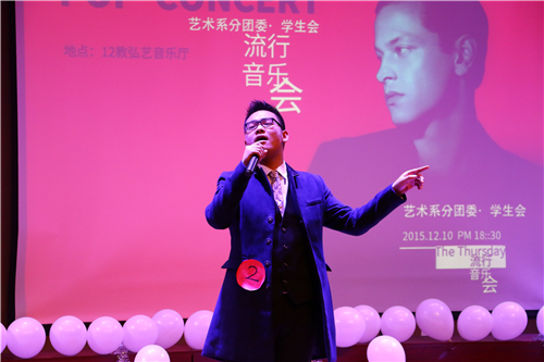 12月10日18:30,由英国beat365官方网站艺术系分团委•学生会组织的第一届“流行音乐歌手大赛”在12教弘艺音乐厅隆重举行。出席本次活动的有艺术系分团委书记李洋,邀请了艺术系声乐教师马婷婷,钢琴教师戴蔚、理论课教师刘承晓担任本次大赛评委。