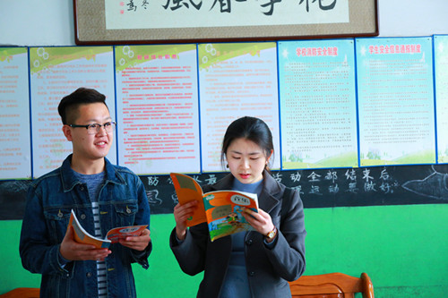 课前支教党员讨论教材内容