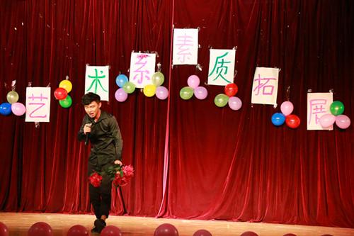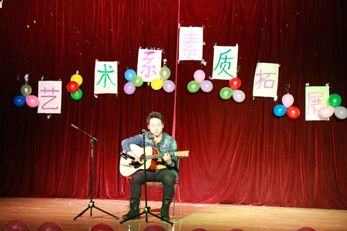 在几项游戏过后,进行了一个调整迎接下面的比赛,艺术系张钤阳、秦骅等同学的深情演唱将整个活动气氛推向了高潮。