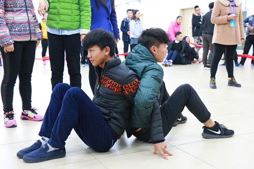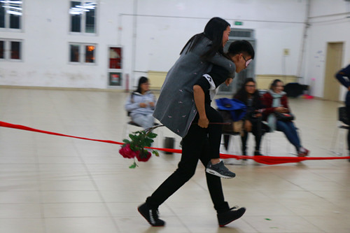 本次素质拓展活动以小组为单位开展活动,共设置了“气球对对碰” “坐地起身” “抢板凳” “衔纸杯传水” “瞎子背瘸子” “趣味接力”六个非常具有创意的比赛项目。活动过程也充满了欢声笑语,处处可以感到团队合作的力量。在艺术系15级学生周俊良和陈雪精彩的开场白后,本次活动正式拉开帷幕。