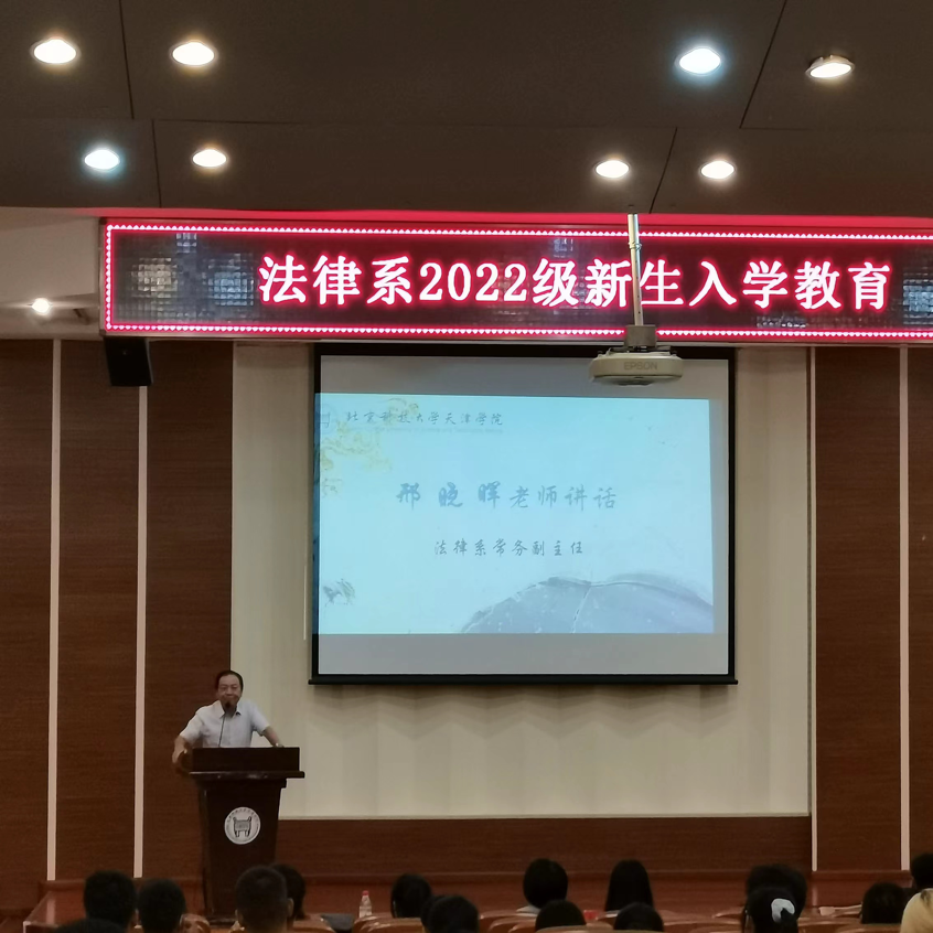 2022年9月21日,法律系在理工图书馆学术报告厅举办2022级新生入学教育。法律系系主任朱京安、常务副主任邢晓晖、党总支书记张莉、2022级辅导员赵振杰、22级法律系全体新生参与本次活动。