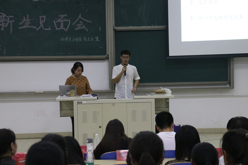 会议在潮水般的掌声中拉开了帷幕,首先由新生军训导员方洁老师发表演讲,方洁老师殷切的表达了对新生的寄托与期待,希望每个新生都能拥有一个美好而又难忘的大学生活。随后,学习部向新生分发了由优秀学长学姐总结的学习经验,对新生以后的学习之路有一个最初的指导,用自己的经验告诉学弟学妹大学生活的美好。接下来法律系分团委、学生会对新生做了社团介绍,让新生对大学的社团生活有了更清楚的认识。分团委书记赵慧敏老师和2016级导员陈旭从大学生活、纪律意识、规矩等方面对新生进行了有益的教育和殷切的叮嘱。最后,各位新生以提问的方式与各位学长学姐进行交流。会议在一片温馨和谐的氛围中落下帷幕。